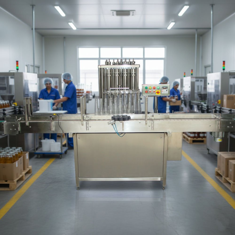 - Discharge: Successfully filled bottles are released smoothly onto the conveyor to move toward the sealing and capping stations.