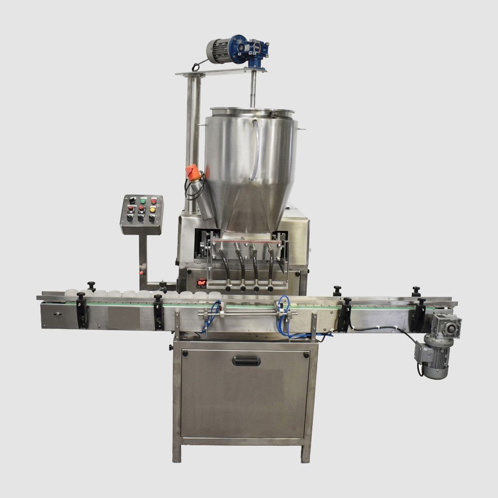 Gels are prone to trapping air during the filling process, which can lead to inaccurate weights and an unappealing product appearance. To solve this, the machine features Diving Nozzles (Bottom-Up Filling). The nozzles descend to the bottom of the container and slowly retract as they dispense the gel. This ensures the container is filled from the base up, displacing air and preventing the formation of bubbles or "tunnels" in the product.