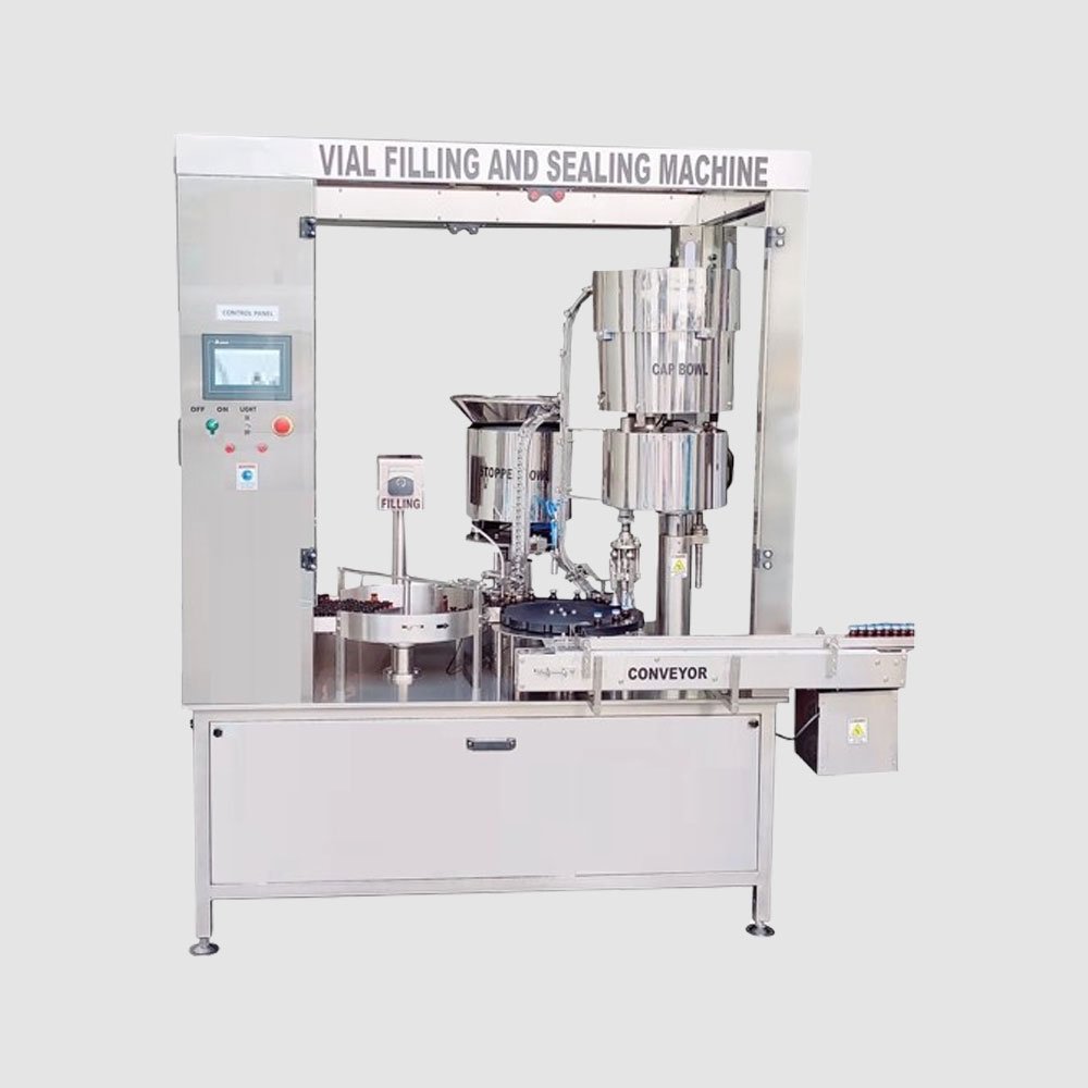 - Stoppering: Filled vials move to the vibratory system where rubber stoppers are applied.