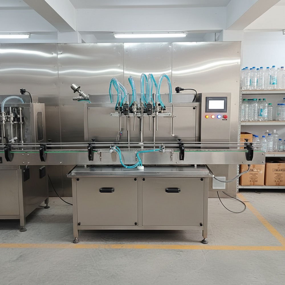 The machine provides a stable, high-speed flow from empty container to accurately filled product.