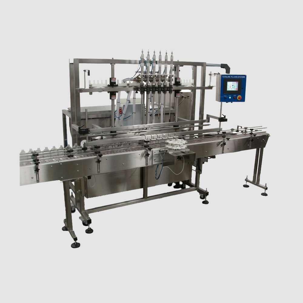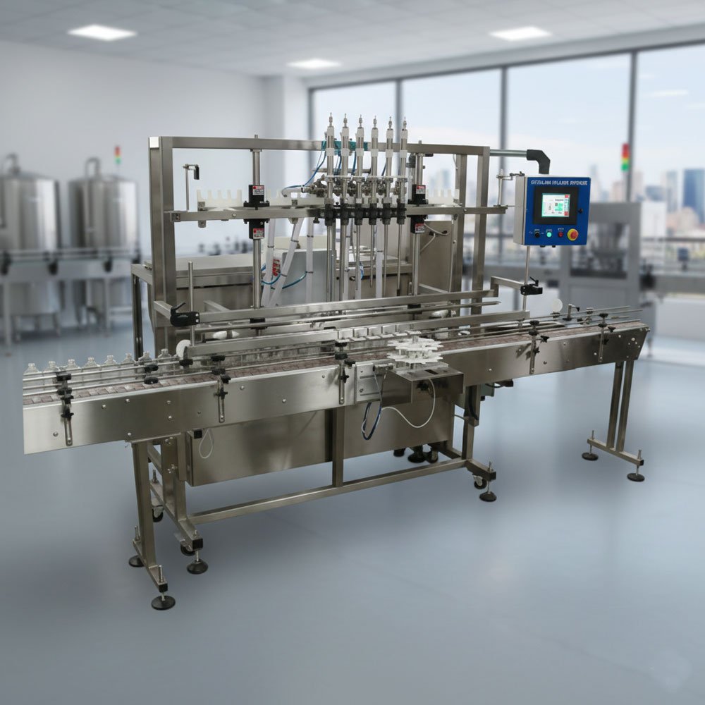 - Controlled Discharge: Diving nozzles descend into the bottles, and the piston dispenses the product with a programmed speed profile.