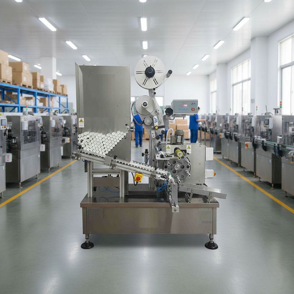 • Wrap-Around Station: As the tube moves into the labeling zone, a motorized vertical foam belt or "wipe-down" roller rotates the tube 360°, ensuring the label is applied without wrinkles, bubbles, or "spiraling" (skewed alignment).