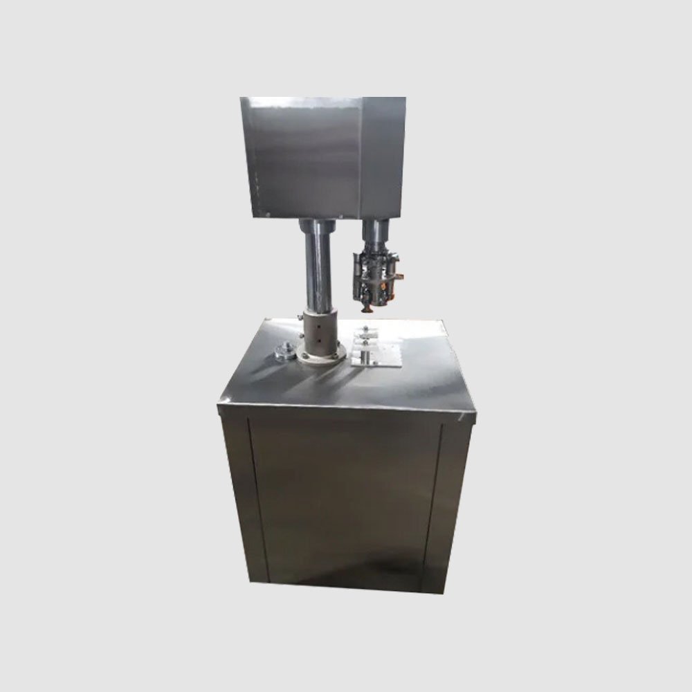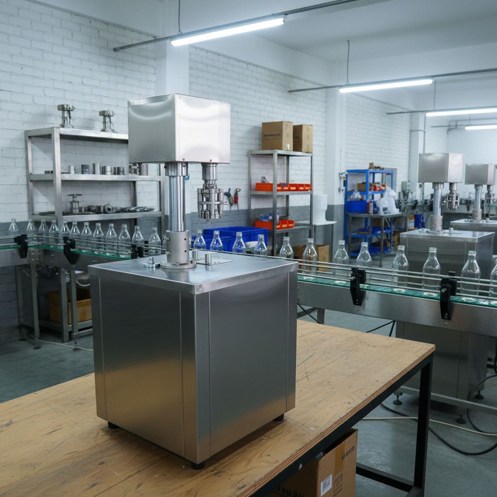 The operation is simple and user-friendly. An operator manually places a filled bottle onto the machine's base plate and sits the aluminum cap on the bottle neck. By pressing a foot switch or dual push-buttons, the capping head descends. The specialized threading and sealing rollers then rotate around the cap, forming it perfectly to the bottle’s threads and tucking the safety band under the bottle rim.